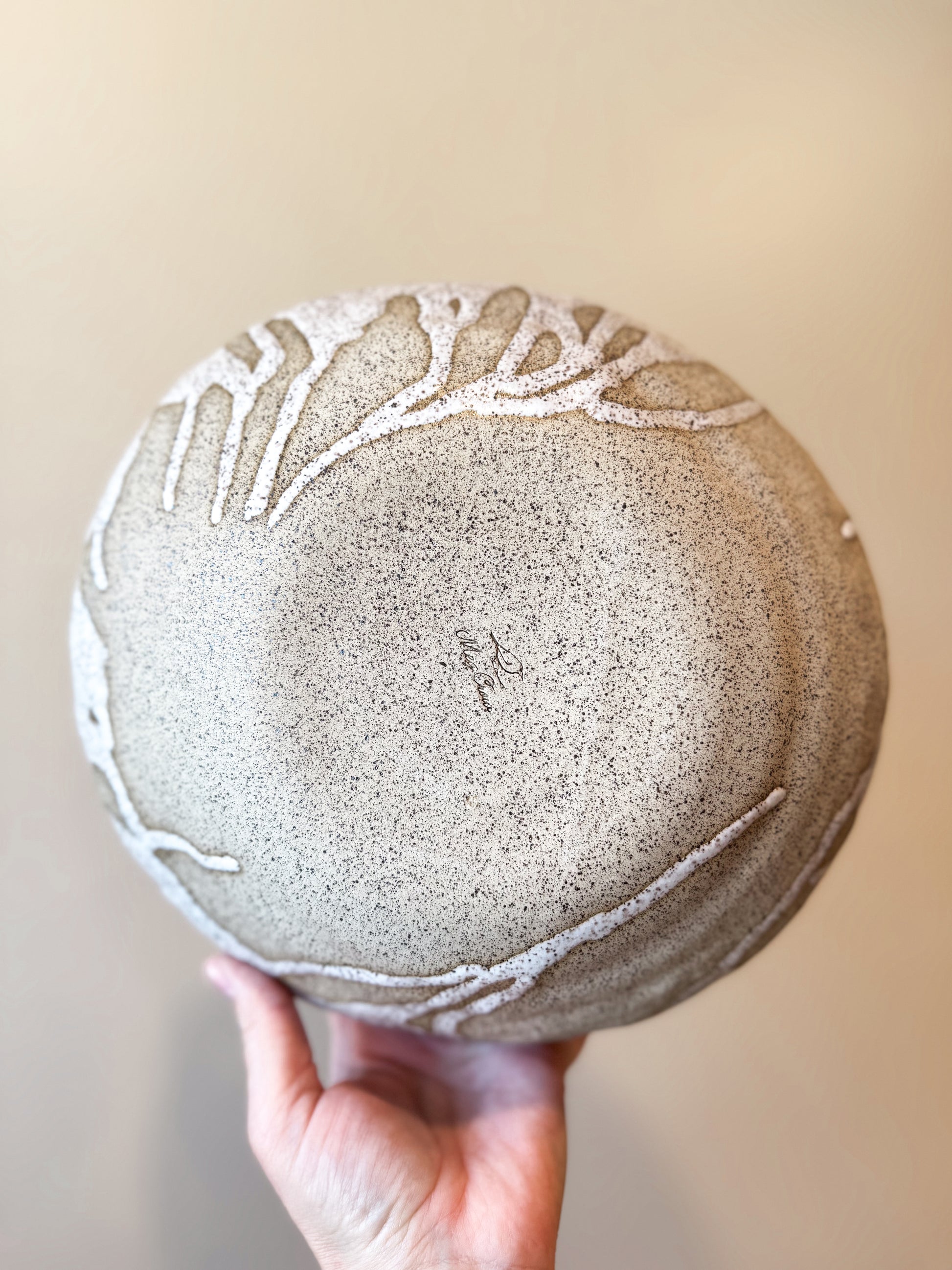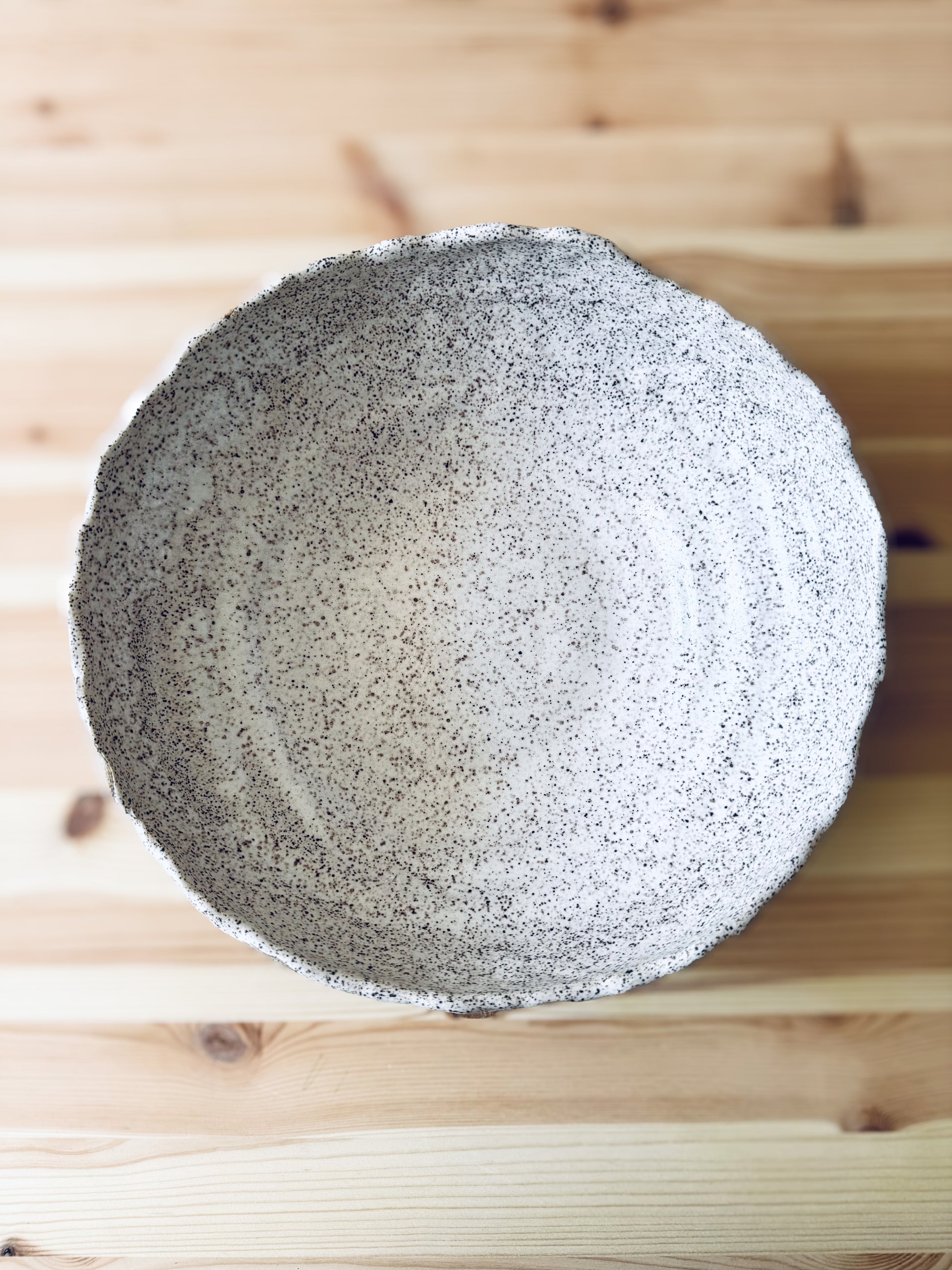Handbuilt with care on beautifully speckled clay, this organic-rimmed bowl features a snowy white glaze that drips naturally down the exterior. No two are ever the same. The inside is smooth and glazed for everyday use, making it as functional as it is beautiful.